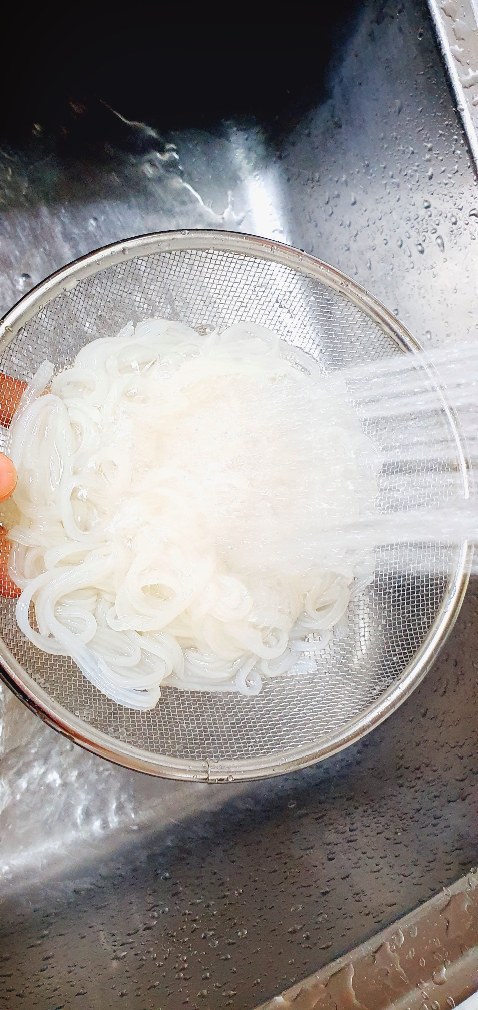우선 컵에 든 곤약면을 채에 걸러 한번
